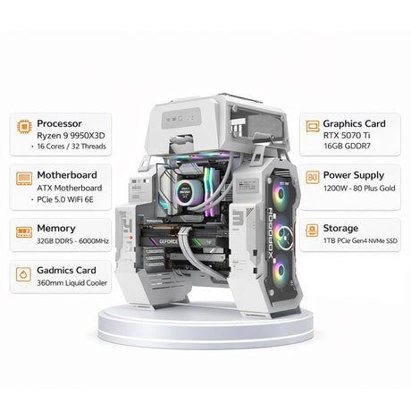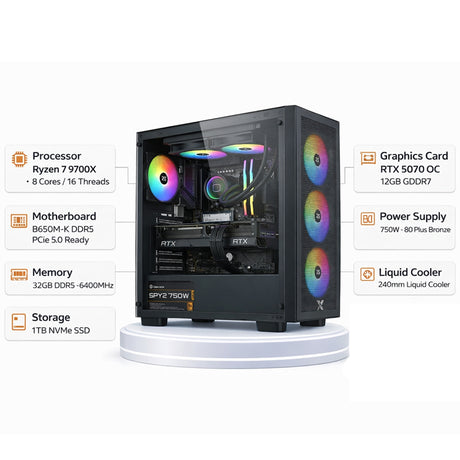 Custom Gaming PC Ryzen 9 9950X3D, RTX 5070 Ti 16GB, 16GB DDR5, 1TB NVMe, Windows 11 Pro