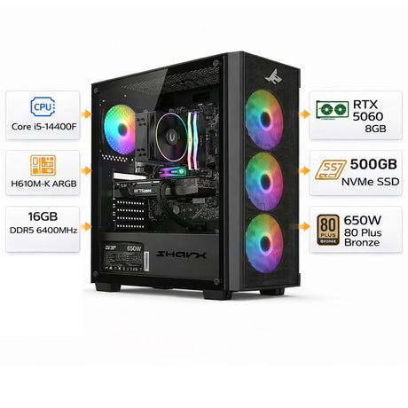 Custom Gaming PC Intel Core i5-14400F, RTX 5060 8GB, 16GB RAM DDR4, Windows 11 Pro