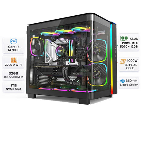 Custom Gaming PC Intel Core i7-14700F, Asus Prime RTX 5070 12GB, 32GB DDR5, 1TB NVMe, Windows 11 Pro