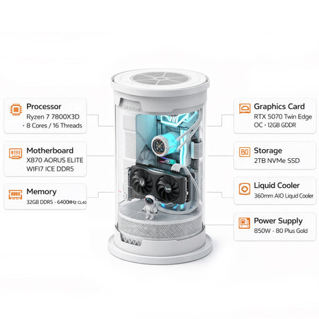 Gaming PC AMD Ryzen 7 7800X3D, RTX 5070, 32GB DDR5, 2TB NVMe - White Build