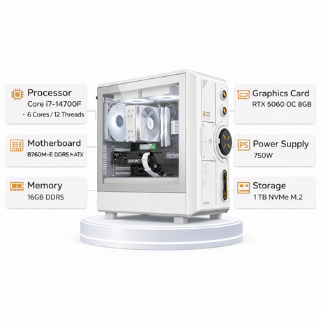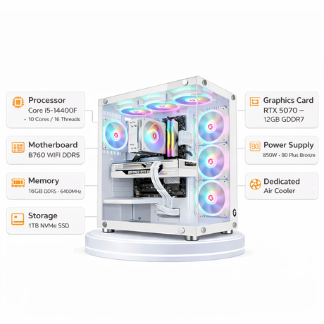 Custom Gaming PC Intel Core i5-14400F RTX 5070 12GB GDDR7, 16GB RAM DDR5, 1TB NVME SSD, Win 11 Pro