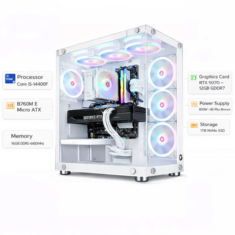 Custom Gaming PC Intel Core i5-14400F RTX 5070 12GB GDDR7, 16GB RAM DDR5, 1TB NVME SSD, Win 11 Pro