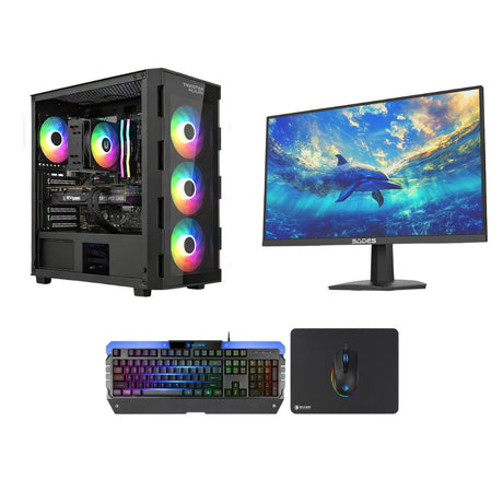 Custom Gaming PC Bundle — Intel Core i5-14400F, RTX 5060 & 24" Curved Monitor with Full Setup