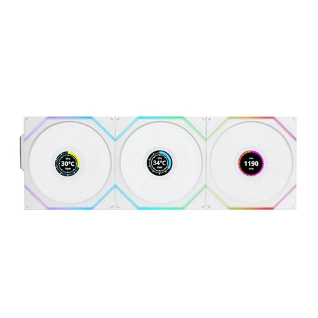 مراوح LIAN LI UNI FAN TL LCD 120mm ARGB مع شاشة LCD بحجم 1.6 بوصة – عبوة 3 مراوح – ابيض