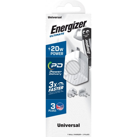 Energizer Ultimate 20W PD/QC Wall Charger with Universal Plug, White