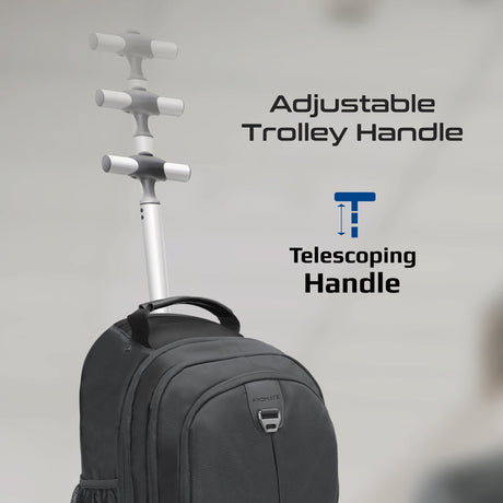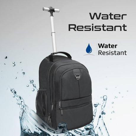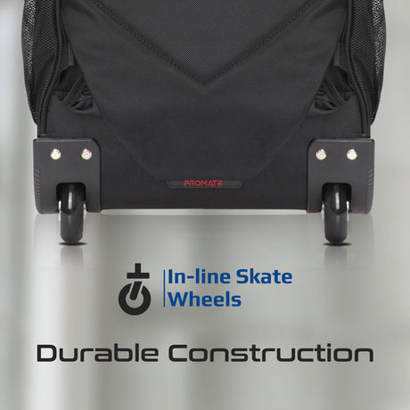 بروميت حقيبة بعجلات بسعة كبيرة مع عدة أقسام مخصصة للابتوب بحجم خمسة عشر فاصلة ست بوصة, أسود
