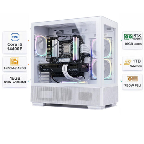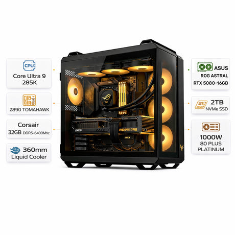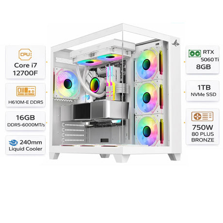 كمبيوتر العاب بمعالج AMD Ryzen 7 9700X، كرت شاشة RTX 5070 OC سعة 12GB، رام 32GB (2×16GB أسود)