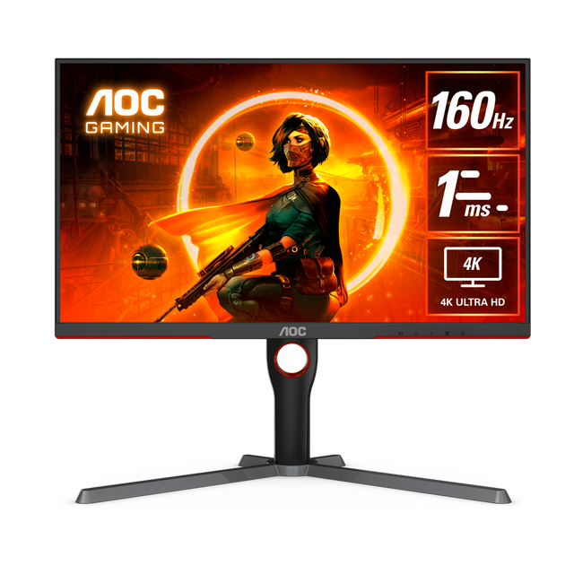 AOC شاشة ألعاب مسطحة بتقنية IPS من طراز U27G3X، مقاس 27 بوصة، بدقة UHD (3840 × 2160)، ومعدل تحديث 160 هرتز، وزمن استجابة 1 مللي ثانية، ومنفذ HDMI 2.1 - أسود