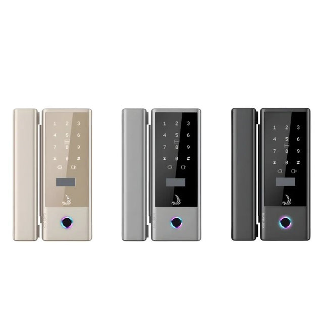 Glass Door Lock Model YG10S fit for Door thickness: 8-12mm(glass door),unlock by TTlock APP / Password / Fingerprint / card / key - Gold متوفر للطلب المسبق وسيتم شحنه فور توفره في المخزون