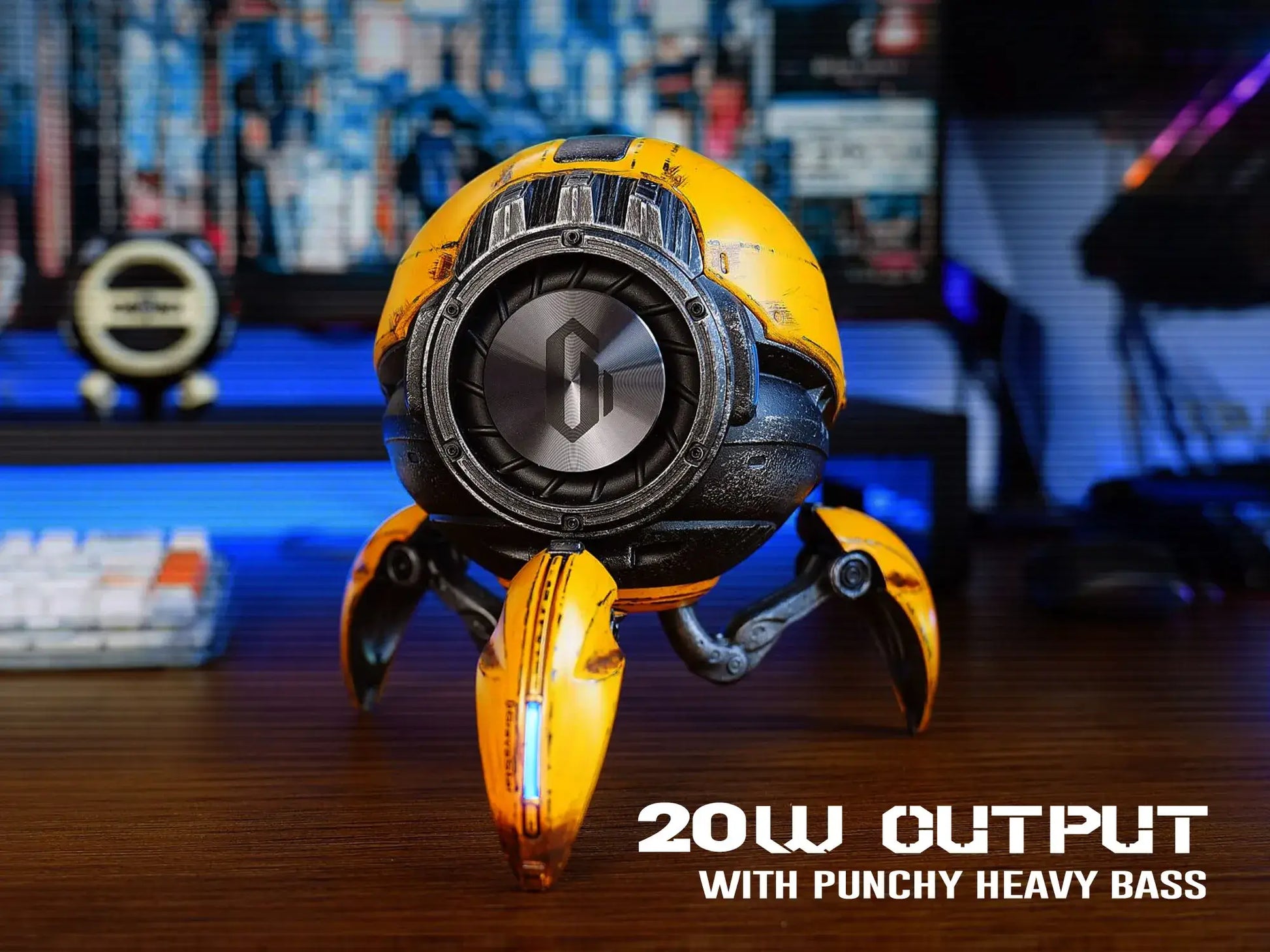 Introducing the GravaStar Mars Pro Bluetooth 5.0 Speaker, a unique blend of superior sound quality and futuristic design. Handcrafted and painted, this War Damaged Yellow speaker is a standout piece thats as individual as you are. Encased in a robust zinc alloy shell, the spherical design houses a dual speaker system and a passive bass radiator, delivering punchy, immersive sound that resonates throughout the room. With state-of-the-art Bluetooth 5.0, enjoy seamless wireless connectivity.