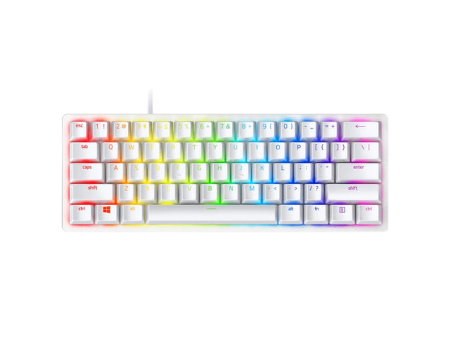 Razer Huntsman Mini Gaming Keyboard 60% Mercury Edition,RGB lighting, Purple Clicky Optical Switch - White RZ03-03393300-R3U1