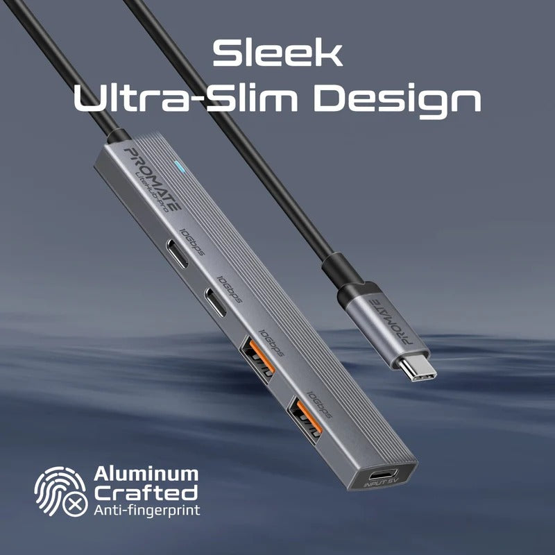 Promate Multi-Port 10Gbps USB-C Data Hub 2 x USB-A 10Gbps ports - Grey