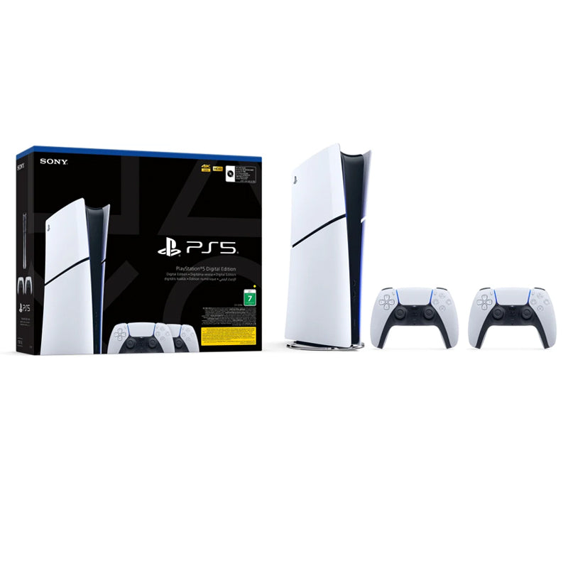 تتضمن مجموعة الالعاب هذه جهاز بلاي ستيشن ٥ سليم الرقمي مع مقبضي تحكم ديوال سينس. يدعم أوقات تحميل سريعة، وتجربة ألعاب بدقة ٤ كاي، والوصول الرقمي الفوري.