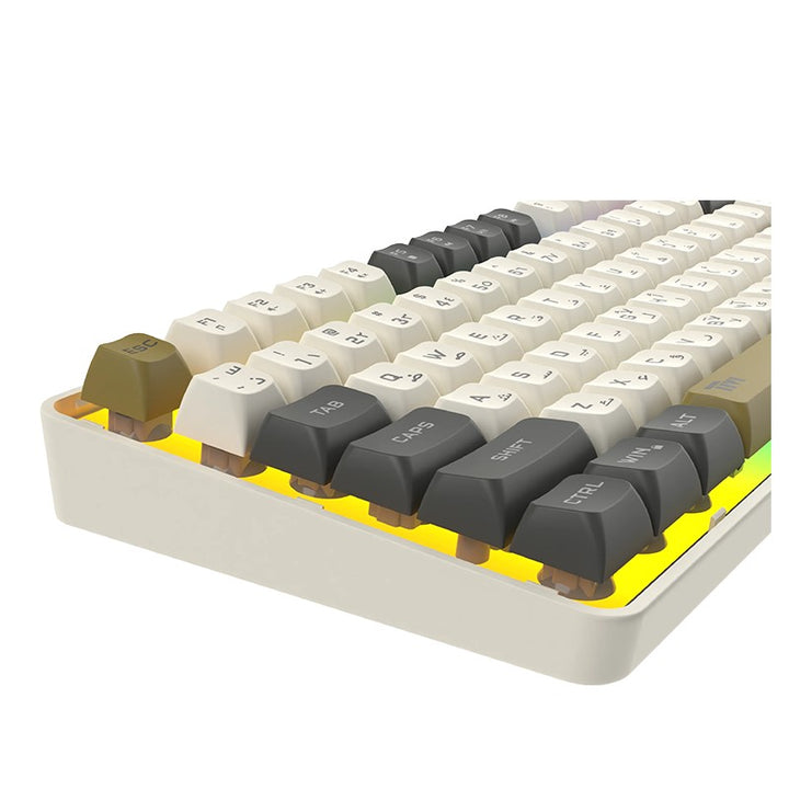 تصميم مدمج بنسبة 75% مع 80 مفتاحًا ومقبض مخصص للتحكم في مستوى الصوت.