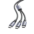 A universal 2-in-1 PD fast charging cable that allows simultaneous charging of two devices from one USB-C input. It supports high power output and is built for durability with braided material and reinforced connectors.