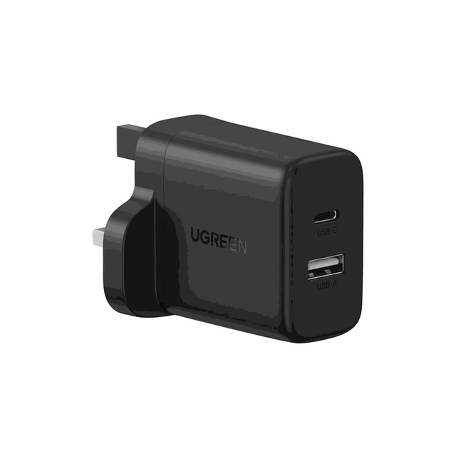 UGREEN 20W 2-Port Fast Charger UK Black متوفر للطلب المسبق وسيتم شحنه فور توفره في المخزون