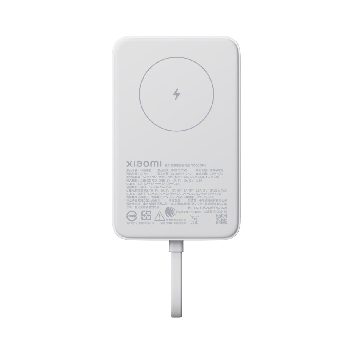 باور بنك شاومي مغناطيسي بقدرة ٣٣ واط سعة ١٠٠٠٠ مللي أمبير كابل مدمج لون أبيض