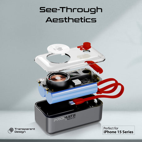 Promate 5000mAh Ultra-Slim Aluminum Crafted MagSafe Compatible Wireless Charging PowerBank