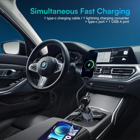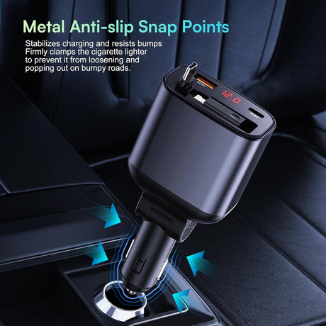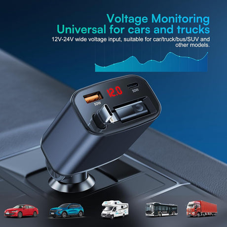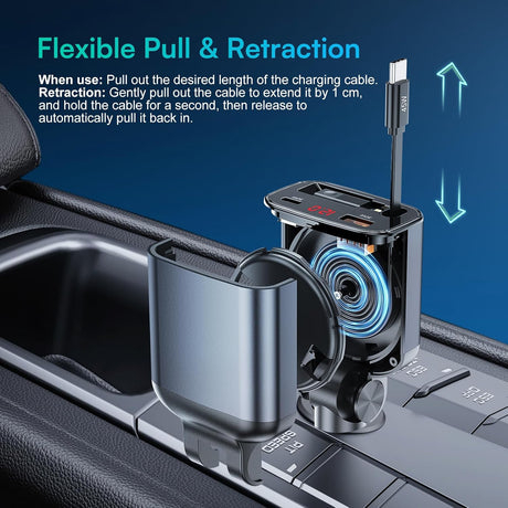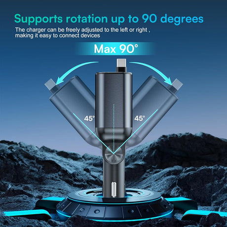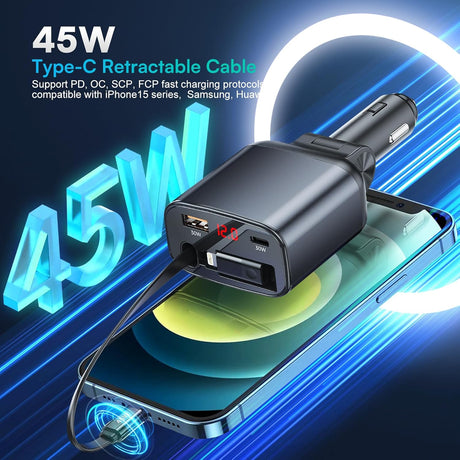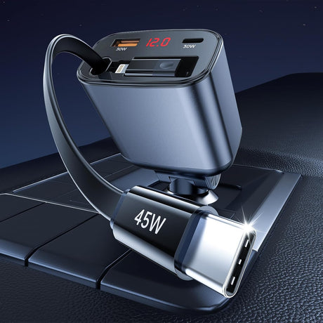 Choetech TC0033 105W Car Charger with Retractable Cable Charger - Black