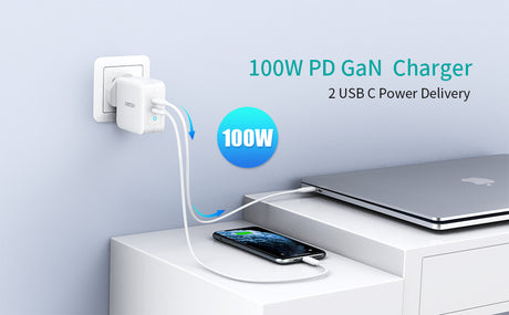 Choetech 100W Dual USB C Port Charger - with CC Cable - White