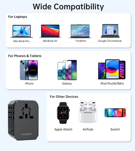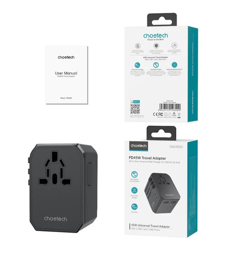 Choetech PD 100W GaN dual USB-C UK Charger with CC cable - Black PD6008-UK-CCBK