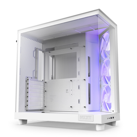 NZXT H9 Flow RGB+ 2025 Dual Chamber Mid Tower Case With RGB Fans & Control Hub - White