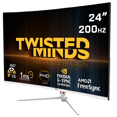 Twisted Minds 23.6" FHD, VA, 200Hz, 1ms Curved Gaming Monitor - White
