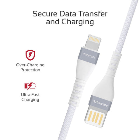 Promate xCord-Ai High Tensile Strength Data & Charge Cable for Apple Devices - WHITE