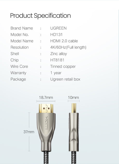 UGREEN HDMI Carbon Fiber Zinc Alloy Cable 3m (Gray) 50109-HD131