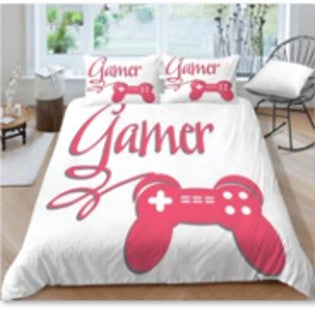 White with Pink Gamer joystic Creative Fashionable Unique Design Bed & Pillow Sheet