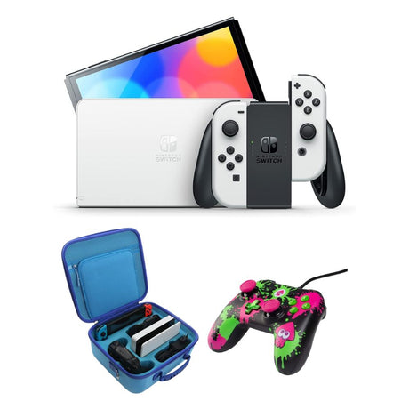 Bundle Nintendo Switch OLED white with Mario Vs DK game with protection storage kit & Screen Glass