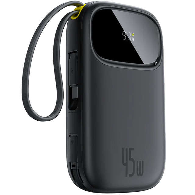Baseus EnerFill FC31 Qpow3 Digital Display Power Bank with 2 Built-in USB-C Cables 10000mAh 45W - Cosmic Black