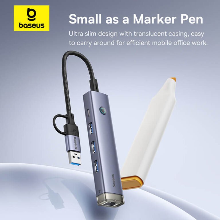 The Baseus UltraJoy Series 4-Port HUB AIR is a compact and practical solution for expanding connectivity options on laptops, tablets, and desktop systems. It provides multiple ports for data transfer, charging, and external device connectivity. Its lightweight design and Space Grey finish make it suitable for everyday use at home, in the office, or while traveling.