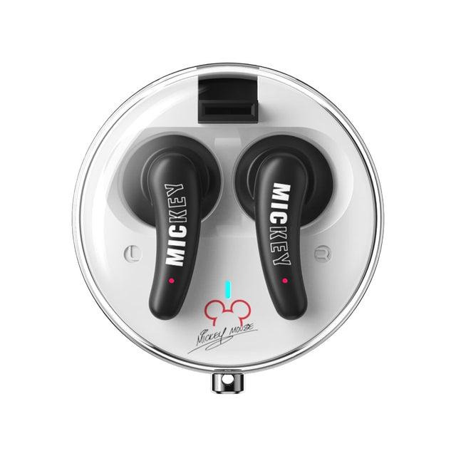 The Disney Mickey TWS headphones in black (QS-27) are perfect for Mickey Mouse lovers. These True Wireless headphones allow you to enjoy your favorite music without cables, thanks to their Bluetooth connectivity.