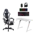 Gamax GM-645 4-in-1 Wired PC Accessory Set Black + Gaming Chair Model 1-LT001L White + Z5-1160 TD-03 Carbon Fiber Gaming Table 110×60×75cm with RGB Light and Mousepad White