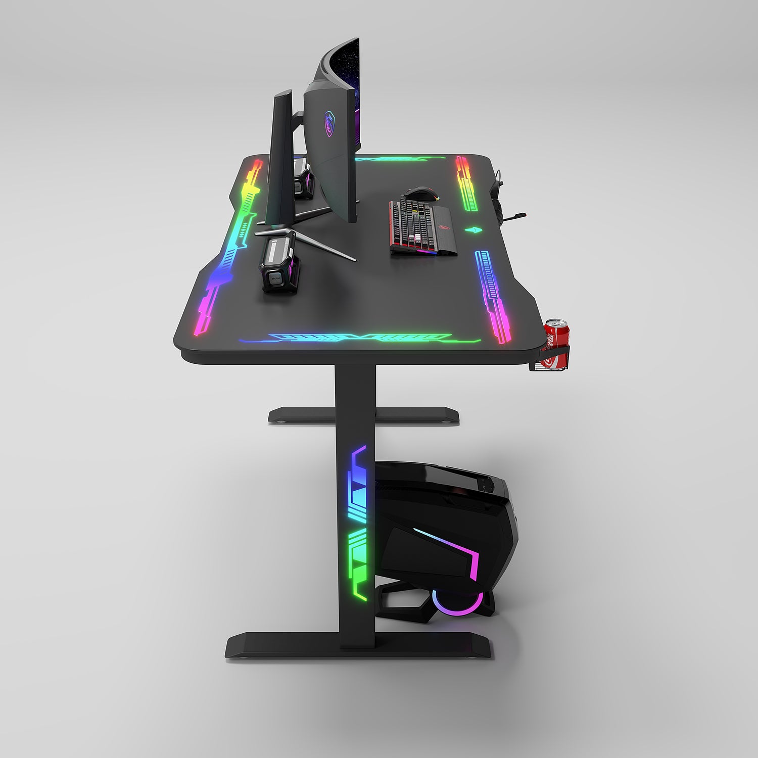 - 3-sided full RGB magic lighting: front panel edge + both table legs for 360° ambient glow