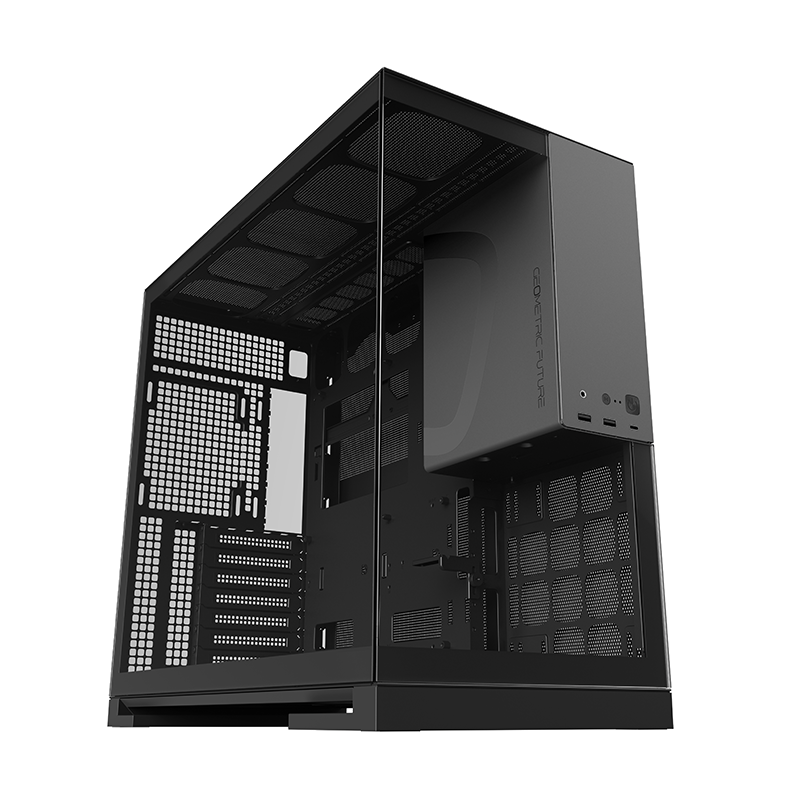 - Geometric Future Model 5 Mid Tower case with pre-installed fan and tempered glass side panel.