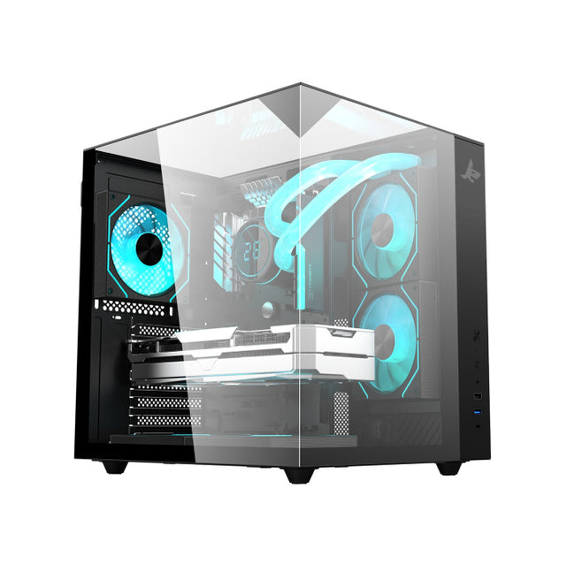 - Case: SHARX GX500-B ATX Gaming Case, Tempered Glass, 5 ARGB Fans, Controller Included