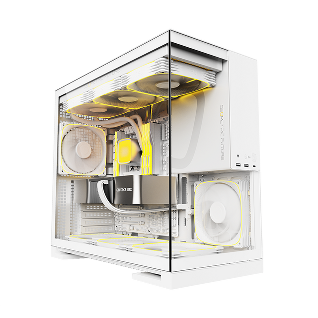 Geometric Future Model 5 Mid Tower Glass Case with 5 Fans - White