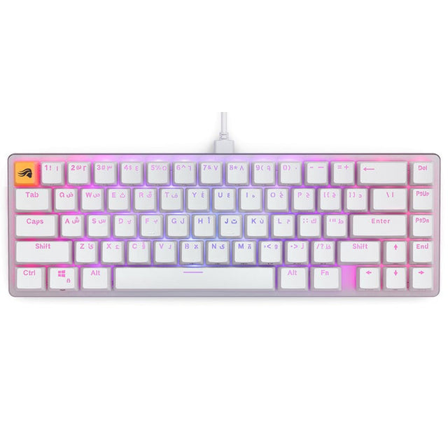 A compact 65% pre-built mechanical keyboard from Glorious, designed with hot-swappable switches and per-key RGB lighting. Built in a white finish with Arabic keycaps, it delivers premium typing quality and gaming performance in a space-saving layout.
