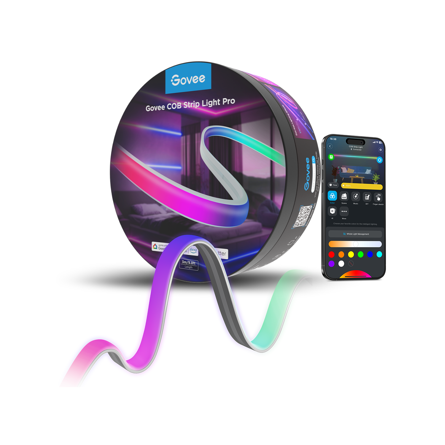 The Govee COB Strip Light Pro H61E5 delivers a premium, seamless lighting experience with COB (Chip-On-Board) technology for ultra-smooth illumination without visible LED dots. At 3 meters long, this smart strip is perfect for accent lighting in bedrooms, living rooms, gaming setups, and workspaces. With RGBIC effects, Wi-Fi control, and a flexible design, you can easily create the perfect atmosphere for any occasion.
