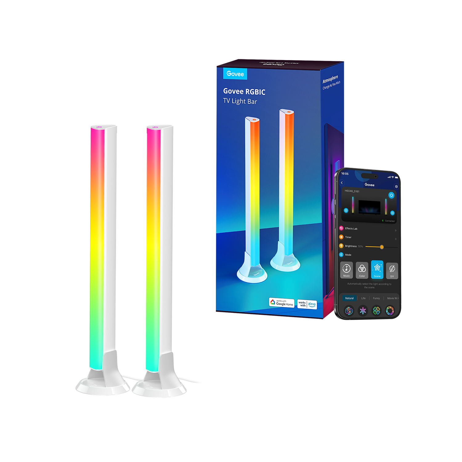 The Govee RGBIC TV Light Bars transform your home entertainment by adding vibrant backlighting effects for movies, gaming, and shows. Designed for TVs between 45 and 70 inches, they deliver immersive lighting synced with your content. With app and voice control, you can easily personalize the setup to match your mood.