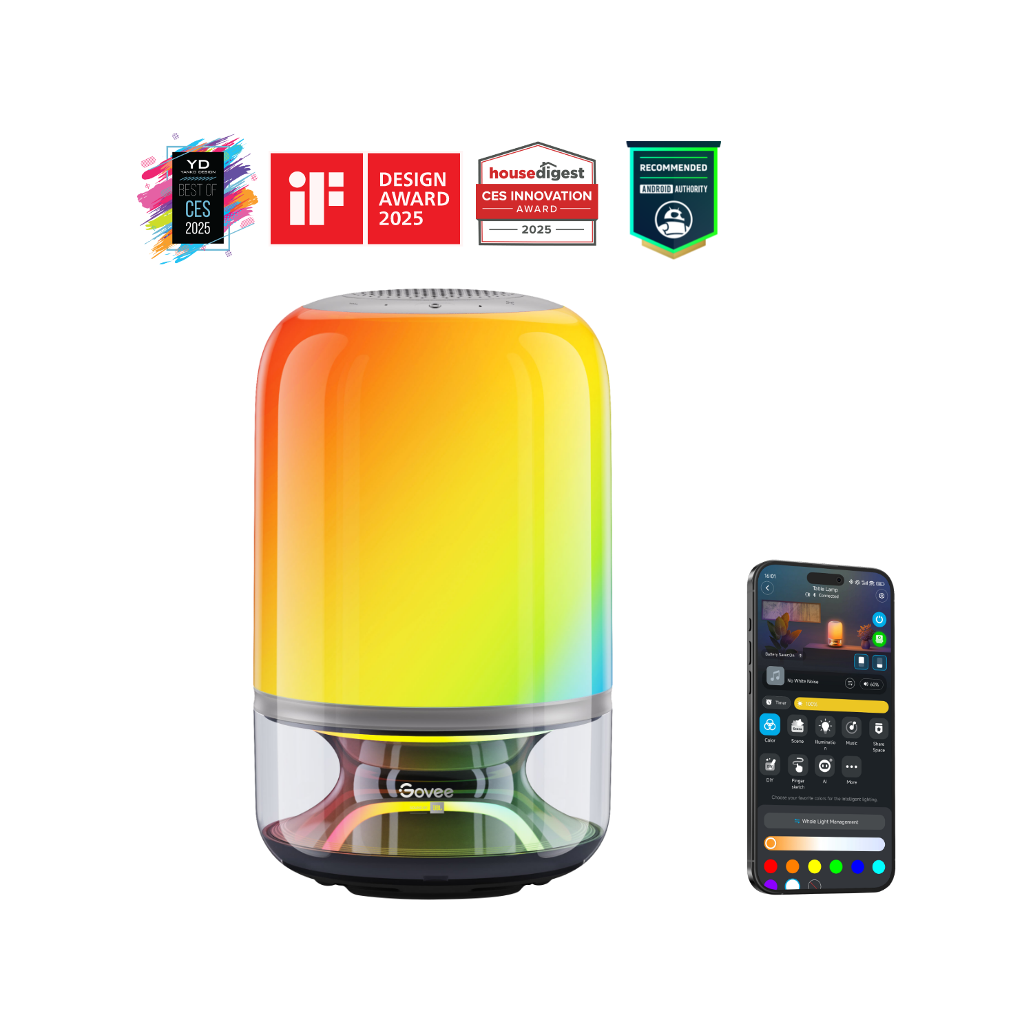 The Govee Table Lamp 2 Pro with Sound by JBL blends lighting and premium audio into one device. With 210 LED beads for sharper visuals, JBL sound quality, and lightning-fast music sync at 32ms, it delivers an immersive experience for your home, bedroom, or gaming setup. The built-in 5200mAh battery offers portable entertainment for up to 4.5 hours, while smart controls via Alexa, Google Assistant, and Matter make it easy to customize your atmosphere.
