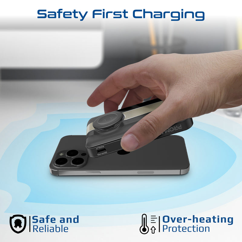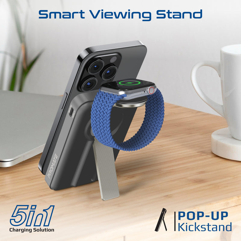 Promate 10000mAh Ultra-Compact 3 in 1 MagSafe Compatible Wireless Charging Power Bank 15W MagSafe Compatible Charger - Black