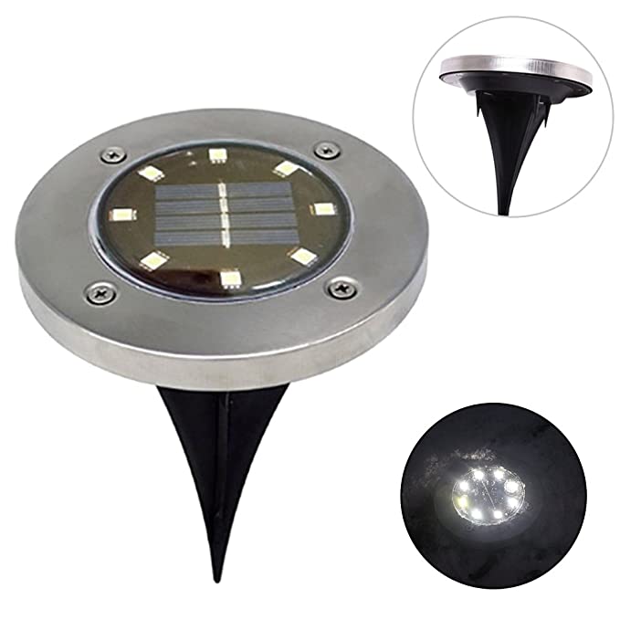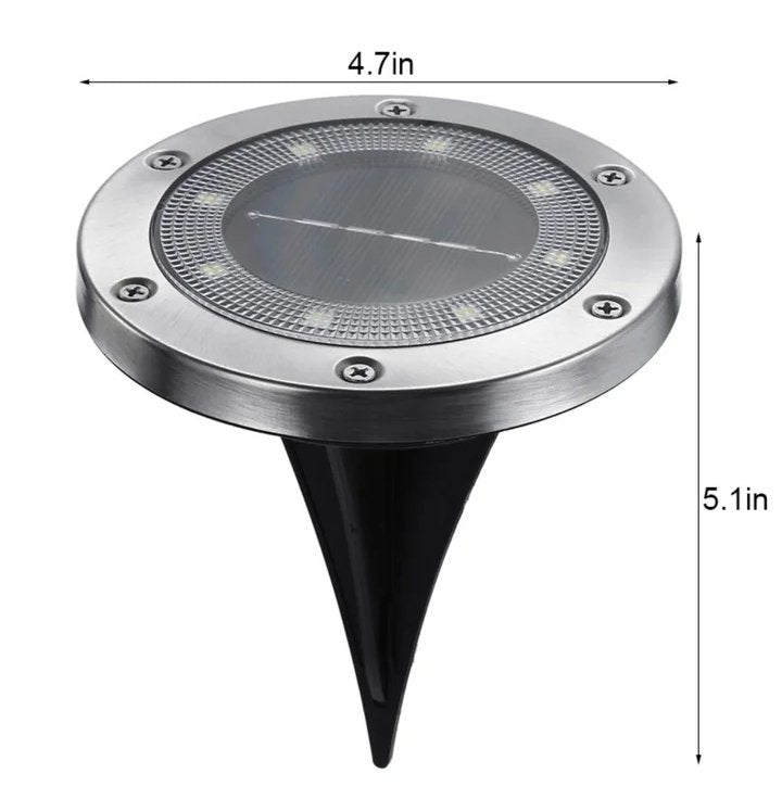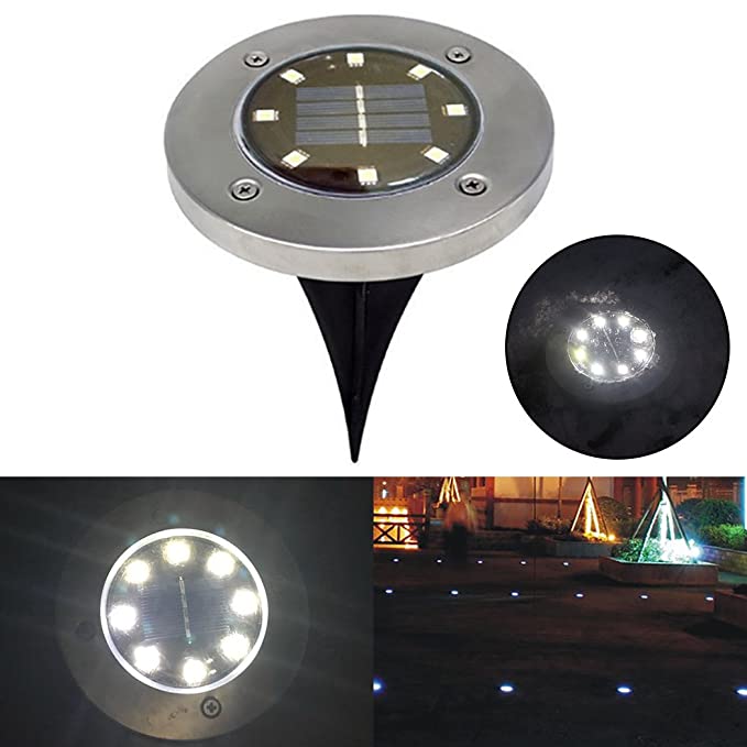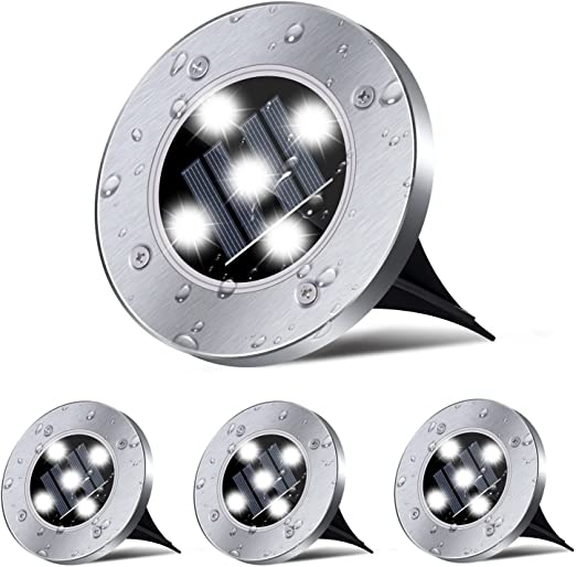 Set of 4 Round Solar Powered Garden LED Lights for Ground Pathway with UV and Water Resistance is backordered and will ship as soon as it is back in stock.